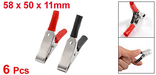 uxcell ワニロクリップ ワニクランプ メタル ソフトプラスチック ブラック レッド シルバートーン 15mm 37g 6個