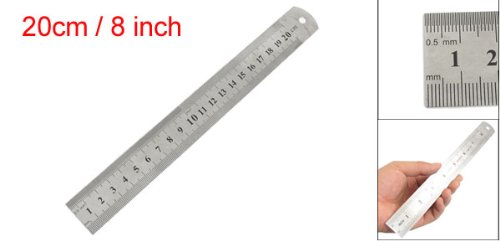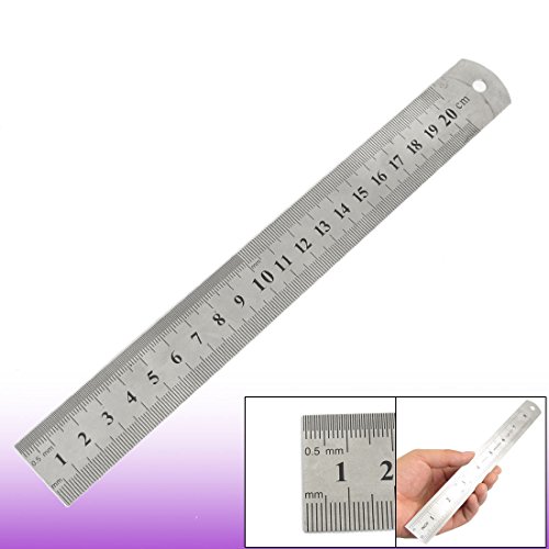 uxcell ストレート定規 0-20cm範囲 ステンレス鋼 シルバートーン ブラック デュアルスケール