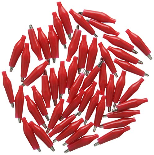 uxcell 電子鰐口クリップ 48個入り 絶縁 電気 鰐口クリップ レッド 26mmテストリード