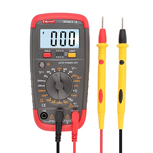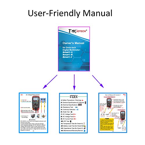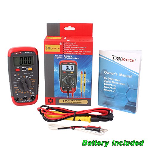 DMiotechスマート-Aデジタルマルチメータには、1年間の保証が付いています。10メガオームの入力は自動車や家庭での使用には安全ですが、2重絶縁のボディ構造と1組のCAT3 1000V 20Aイエロープローブがあり、 初心者または専門家の手。認定:CE