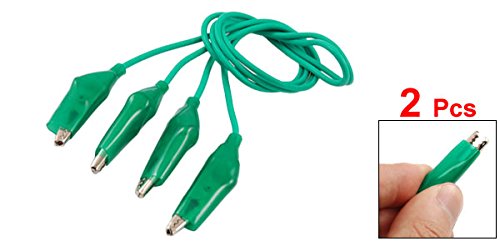 uxcell 絶縁ブート ワニ口クリップ テストリード グリーン バナナプラグ ケーブル 長さ40cm 2本入り