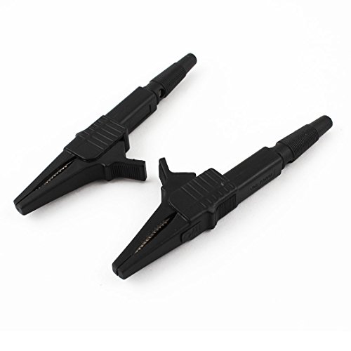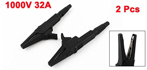 uxcell 絶縁ワニ口クリップ テストリード バナナプラグ 1000V32A ブラック メタル プラスチック 2個入り