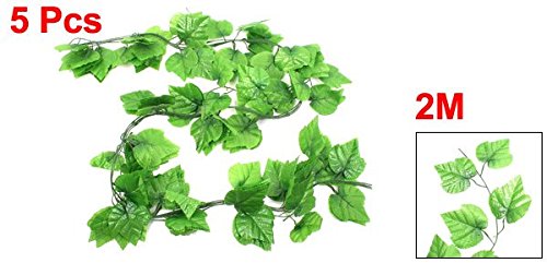 uxcell 高品質 手作り 壁掛け 人工植物 エミュレーション インインテリア 青葉飾り プラスチック材質 2M総丈 5個入り
