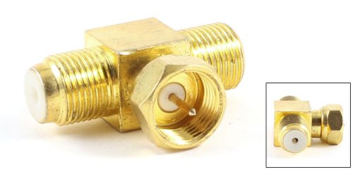 uxcell RF同軸コネクタ アダプタ Tタイプ 1オス ー 2メス Tトリプル ゴールドトーン