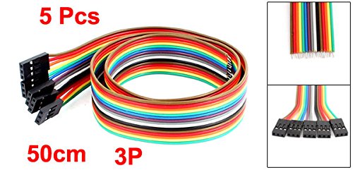 uxcell ジャンパーワイヤー リボンケーブル シングルヘッド メス 3P 50cm長さ 2.54mmピッチ 5本入り
