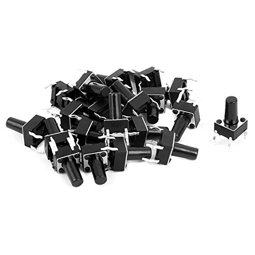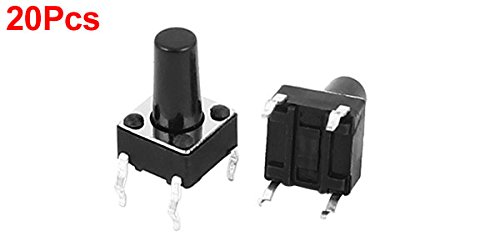 uxcell タクトスイッチ プラスチック 金属 ブラック シルバートーン 6mmx6mmx10mm 4端子 20個入り
