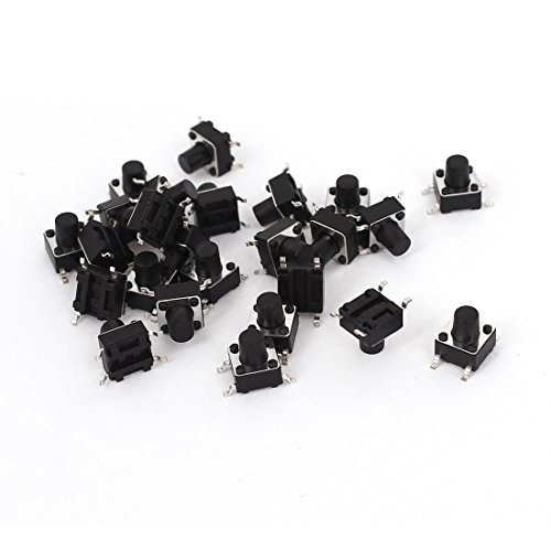 uxcell タクトスイッチ 4端子 6mmx6mmx7mm プラスチック 金属 押しボタン 置換 25個入り