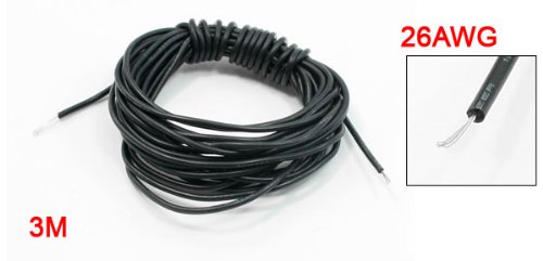 uxcell シリコンコード シリコーンケーブル 銅コアワイヤー ガラス繊維 ブラック 26AWG 300cm