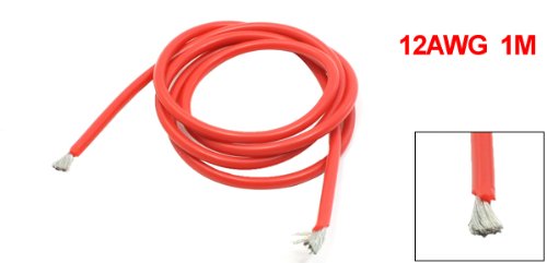 uxcell シリコンコード 12AWG 長さ1M ガラスファイバー シリコーン樹脂 銅 レッド