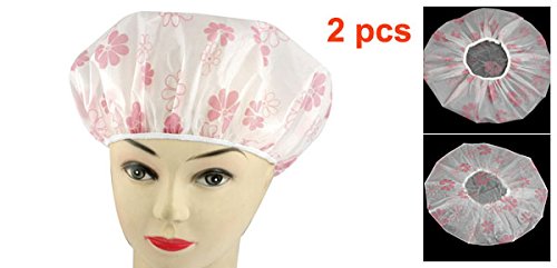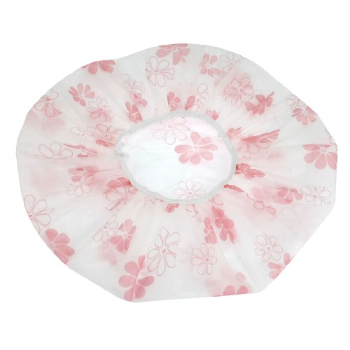 uxcell シャワーキャップ 女性用 折り畳み式 花柄 ナイロン製 ホワイト 防水 伸縮性 2セット