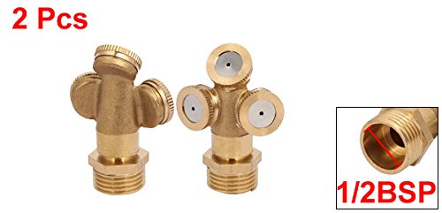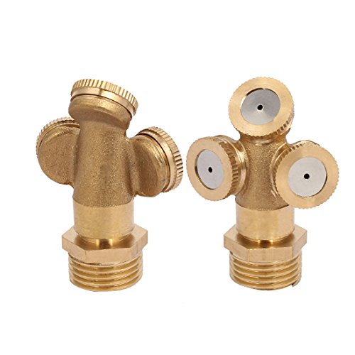 uxcell ミストノズル 霧ノズル ゴールド 農業用 高圧力 三つのヘッド オリフィス直径1.2mm オスネジ 2個入り