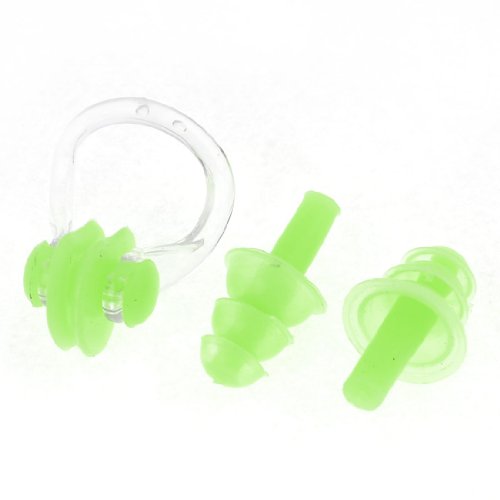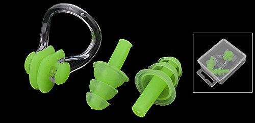 uxcell 耳栓+ノーズクリップ アダルト用 水泳 プール サーフィン 中耳炎 予防に グラスグリーン