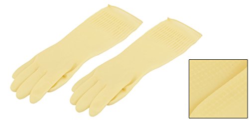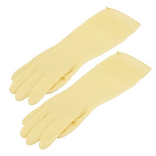 uxcell ゴム手袋 ゴム手袋 家事用 洗濯 洗浄 長いグラブ 男女通用 イエロー ゴム XL 40 x 13cm 1ペア