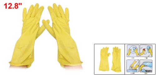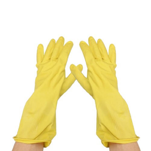 uxcell クリーンラテックス手袋 家庭用 作業用 ウォッシュクリーンラテックス手袋 炊事 掃除用 イェロー ロング