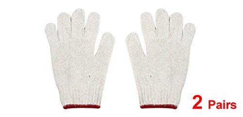 uxcell 作業手袋 綿糸製ホワイトレッドオフ 大工用品 画家の電気技師 弾性カフ フル指 2ペア入り