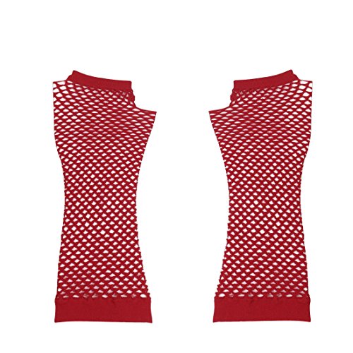 uxcell 指なし手袋 レディース 手袋 メッシュ フィッシュネット 肘の長さ アームカバー レッド ペア