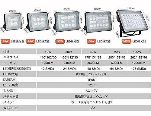 - ◆【高輝度 省エネ】:2700LMのLED投光器は高品質のLED専用チップを採用し、相当のウルトラな明るさを実現し、通常の投光器より70%の電力を節減します。