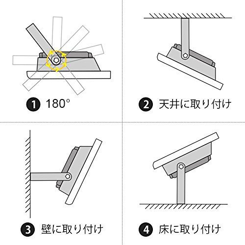 - ◆【多用途】:作業灯や舞台灯のみならず、看板灯や集魚灯、演出照明灯なども使われており、店舗壁面、庭、舞台から公園、駐車場まで活躍な汎用投光器です。