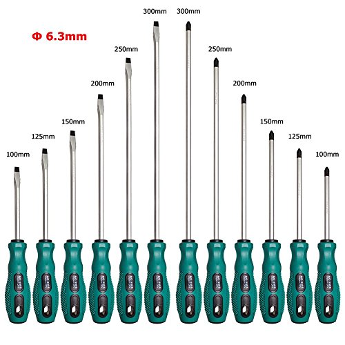 - ドライバーの直径:6.3mm / 0.25 " 適用ねじ:直径6.3mm / 0.25 " 材料:PP +クロムバナジウム合金鋼 重量:1670g ドライバーヘッドスタイル:Phillips、Slotted(各6個入り)