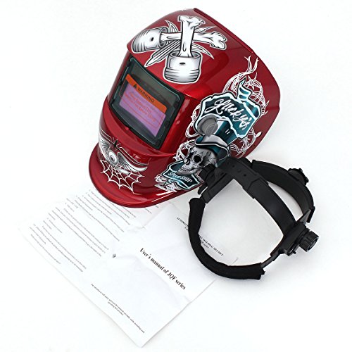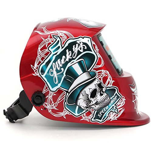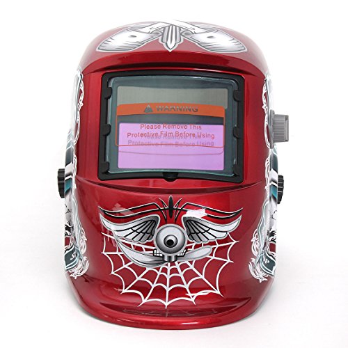 win_choice 太陽エネルギー自動フィルター溶接マスク 自動遮光溶接マスク/溶接面 溶接ヘルメット 溶接機 内部の調整可能 ソーラー充電式 レッド スカルスパイダーウェブパターン