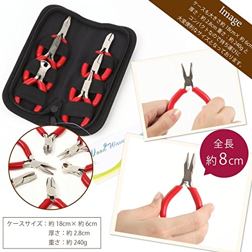 woodwave アクセサリー制作に 持ち運び用 ペンチ&ニッパー 6本 指ぬき オリジナルクロスセット ww071