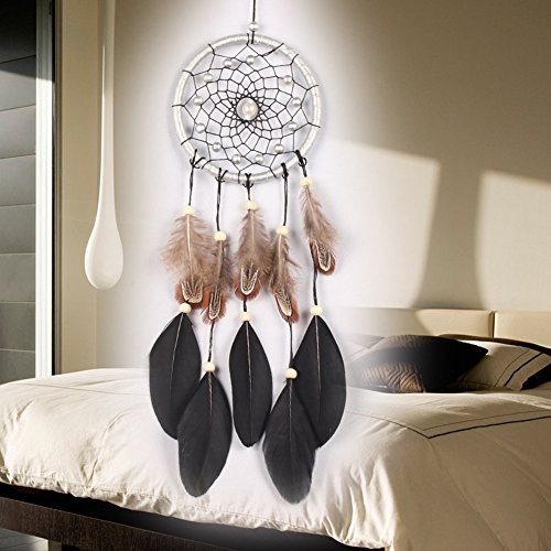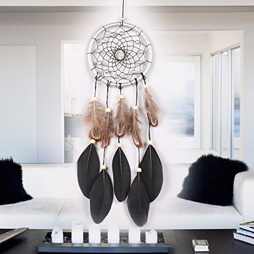 手作りのドリームキャッチャーネットで羽ぶら下げ装飾インテリアクラフト風チャイムドリームキャッチャー11*45センチE5M1