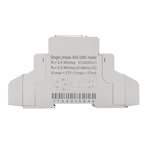 - 仕様:動作電圧:230V AC +/- 10%動作湿度:≦75%保管湿度:≦95%動作温度:-10℃-- +50℃保存温度:-30℃-- +70℃国際規格:IEC 62053-21精度クラス:1保護レベル:IP51サイズ:116mm x 18mm x 59mm(H x W x D)絶縁機能:AC耐圧:1分間2KVインパルス耐電圧:6KV - 1.2μS波形基本電流(Ib):5A最大定格電流:(Imax)45 / 50A動作電流範囲:0.25A--45 / 50A過電流耐性:960A(0.01s)動作周波数範囲:50 / 60Hz内部消費電力:≦ 1W / 10VA