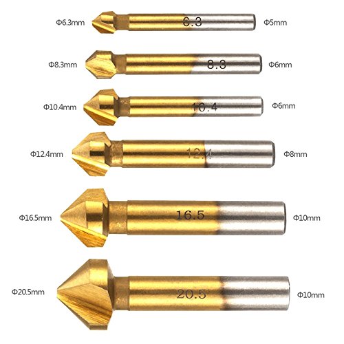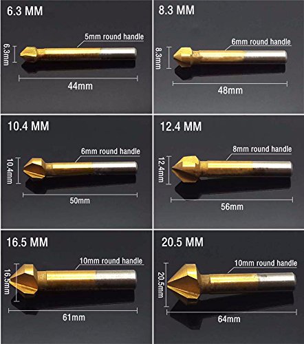 面取りカッター バリ取り 高速度鋼工具6.3/8.3/10.4/12.4/16.5/20.5mm 6セット金属 プラスチック トリム 面取り パンチ
