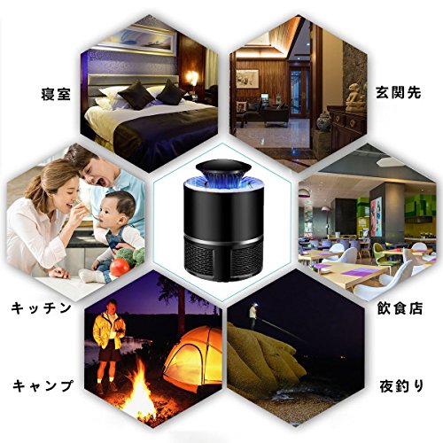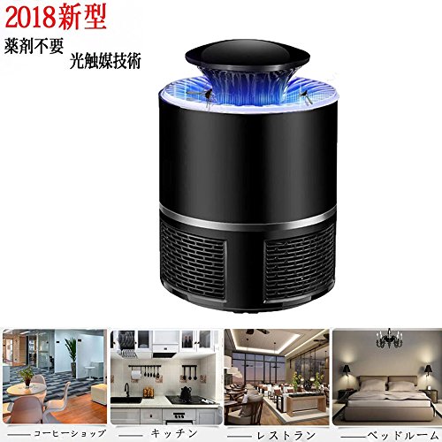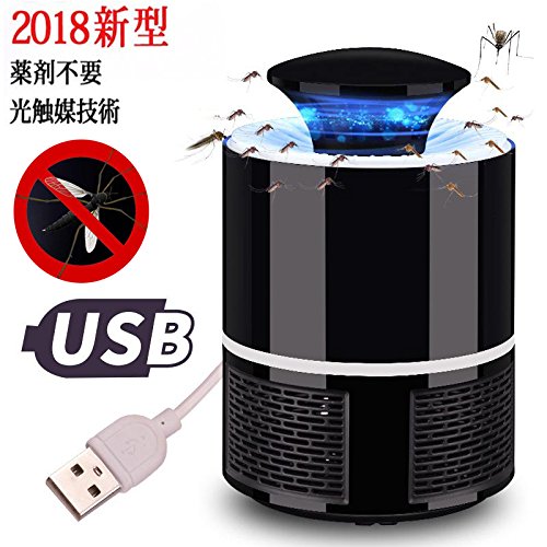 蚊取り器 UV光源誘引式捕虫器 【2018新型 光触媒技術 薬剤不要】虫除け 殺虫器 USB給電式 静音 省エネ 赤ちゃんやペットにも安心 誘虫灯 蚊取り(ブラック)