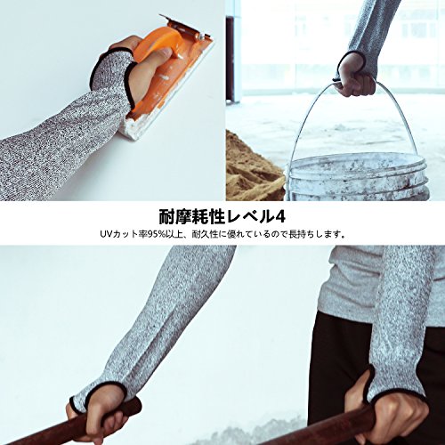 防刃長手袋 防刃 難燃 耐磨耗性 耐切創レベル5 切れない軍手 肘までカバー 腕も保護 防刃スリーブ ,手首・ヒジをがっちりガード 両手1組 (灰色)