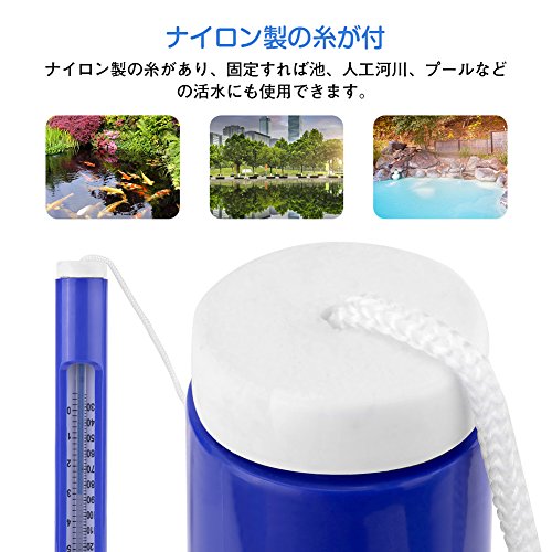 - 【使いやすい】この水温計は、プール、池などの水の温度を簡単に伝えます。家にあるの温度計と同じの原理なので、水に入れるだけで、しばらく水温が正しく明確に表示されます。水槽温度計として活躍できます。水温計の測定部分は水面から15cm以下の温度を測定しますから、太陽や風の影響を受けなくて、より正しい温度が測定できます。
