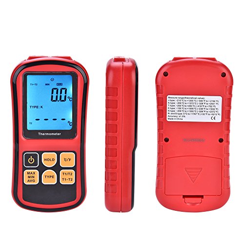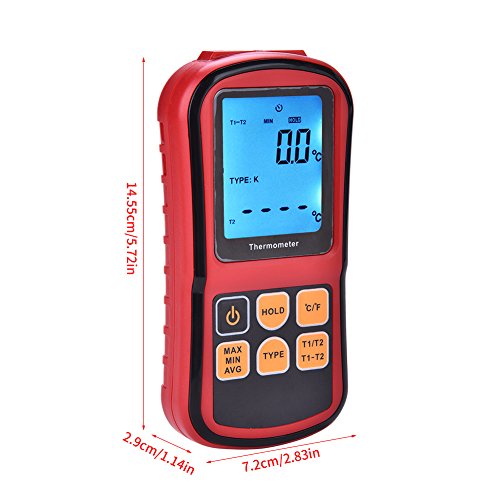 - 【デュアル熱電対】デュアルチャンネルLCDディスプレイ温度計はJ、K、T、E、N、S、Rタイプの熱電対を測定します。電気的補償機能は、熱電対誤差に対する補償を提供し、全体の精度を向上させます。
