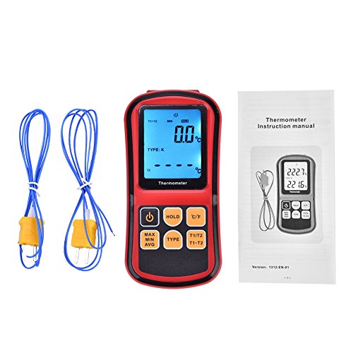 デジタル温度計 デュアルチャンネルLCDディスプレイ温度計 デュアルチャンネル熱電対 熱電対温度計 デュアルチャンネル温度センサー J/K/T/E/N/S/Rタイプの熱電対 LCDバックライト付き