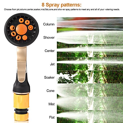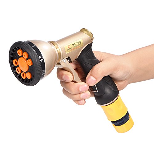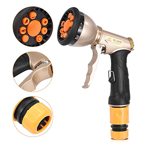 - 【8種のパターンと流れの調整】この散水ノズルは八種のスプレーパターンを搭載されて、すべての給水ニーズに対応することができます。指だけて最小から最大までの流量をコントロールでき、疲れないデザインです。片手で散水ノズルを握って流れの強さを調整でき、便利です。