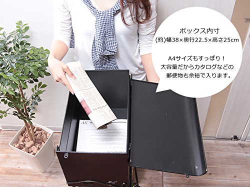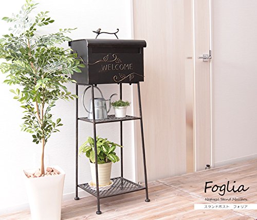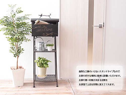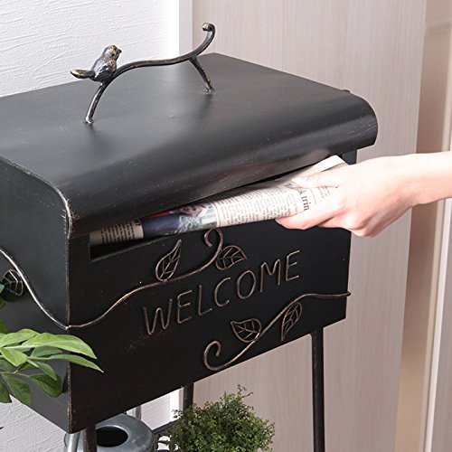 ●アウトレット商品です● (細かな凹み・隙間等があります。) リーフと小鳥のモチーフがお洒落なアンティークテイストのスタンドポスト。 面倒な工事が不要なスタンドポストでお好きな場所に簡単設置可能。 組立も本体と脚をボルトで留めるだけの簡単組立。 取り出し口は大きく開くので郵便物の出し入れラクラク。 プランターやガーデニングアイテムが置ける2段のラック付き。