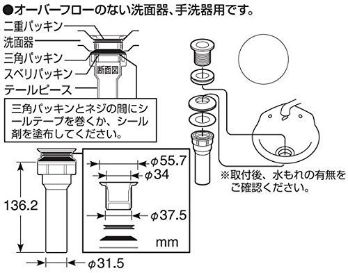 - オーバーフローのない洗面器、手洗器用の排水栓です。・・・・・続きは下記の商品説明をご覧ください。