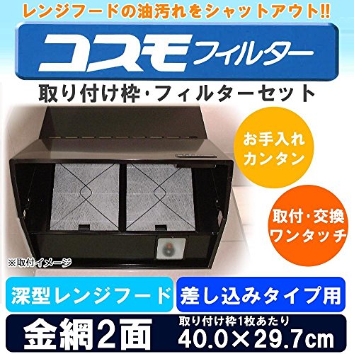 油汚れをシャットアウト 難燃性ガラス繊維フィルター コスモフィルター 深型レンジフード 金網2面 差し込みタイプ用 取り付け枠・フィルターセット 40.0×29.7cm [簡易パッケージ品]