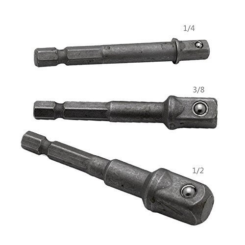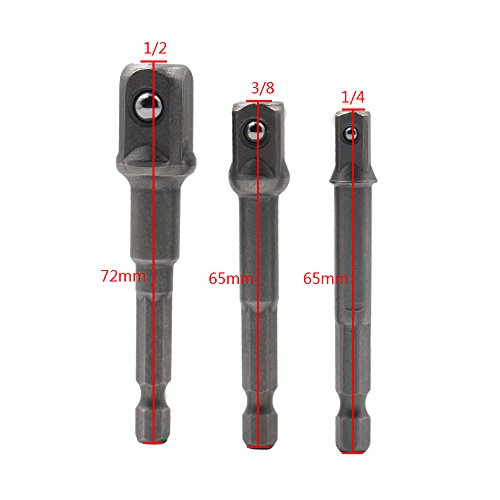 - ソケットアダプター 3本組セットです。電動ドリル等の先端に取り付けることによって、各差込サイズのソケットを使用することができるソケットアダプターになります。