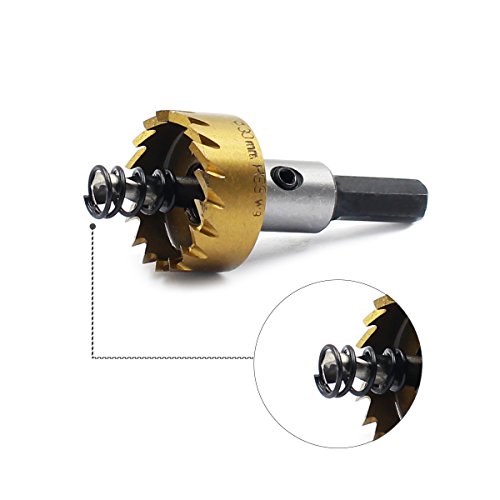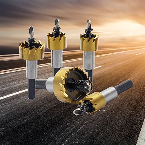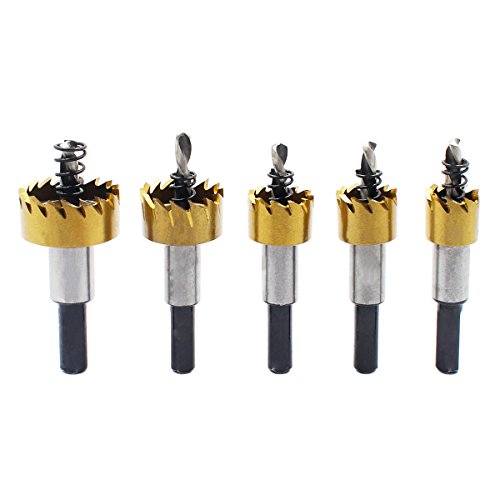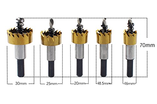 yiteng ホールソー セット ドリル ビット 木工 超硬 ステンレス 高速度鋼 穴あけ 16 18 20 25 30mm 5個セット クリア収納箱付き (ゴールドホールソー)