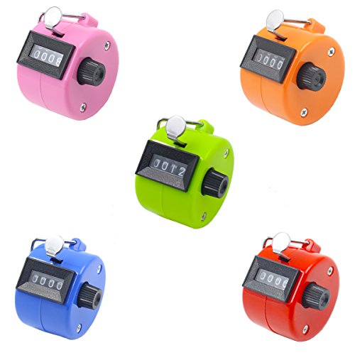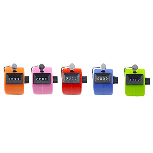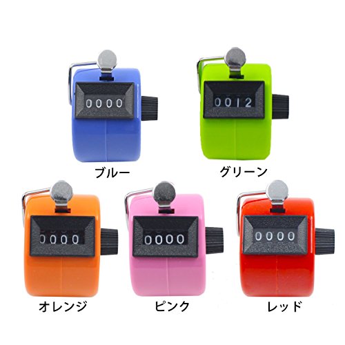 数取器 5桁 手持ち(カウンター)5色セット(ピンク/オレンジ/青/緑/赤)度数計 サークル/スポーツ/コーチ/スクール/イベントに使用