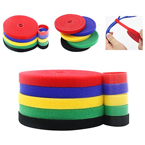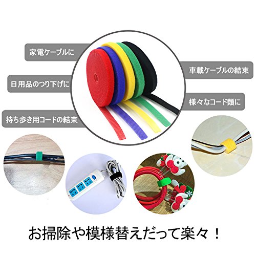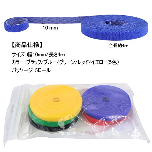 Hiveseen マジックテープ式 結束バンド 5色セット 10mm*4m ケーブルまとめ 配線バンド 配線固定 配線整理 お片付け パソコン/オフィス/卓上