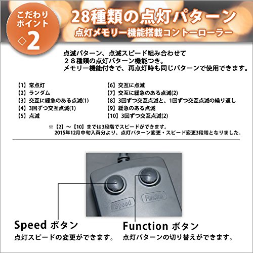 点灯パターンが9種類・スピード調整が3種類 さらに常点灯を加えて、多彩な28種類のパターンが楽しめます。他社製品は8パターンという商品も多いですが、 豊富な発光パターンが楽しめます。