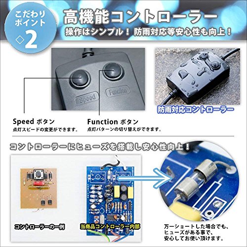 - 【コントローラー・性能】点灯パターン28種類(点滅パターン9種類×スピード調整3種類・常点灯)