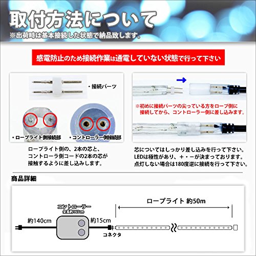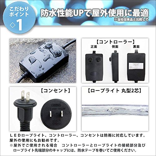 - 【商品内容】 LEDロープライト・丸型 50m(1500LED)×1、 エンドキャップ×1、コントローラー×1、日本語説明書