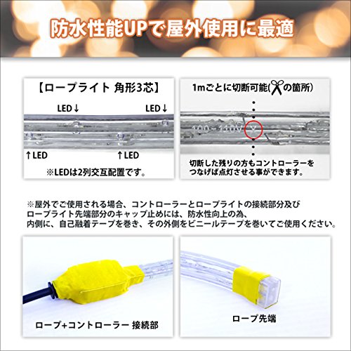 - 【商品内容】 LEDロープライト・角型 50m(2500LED)×1、 エンドキャップ×1
